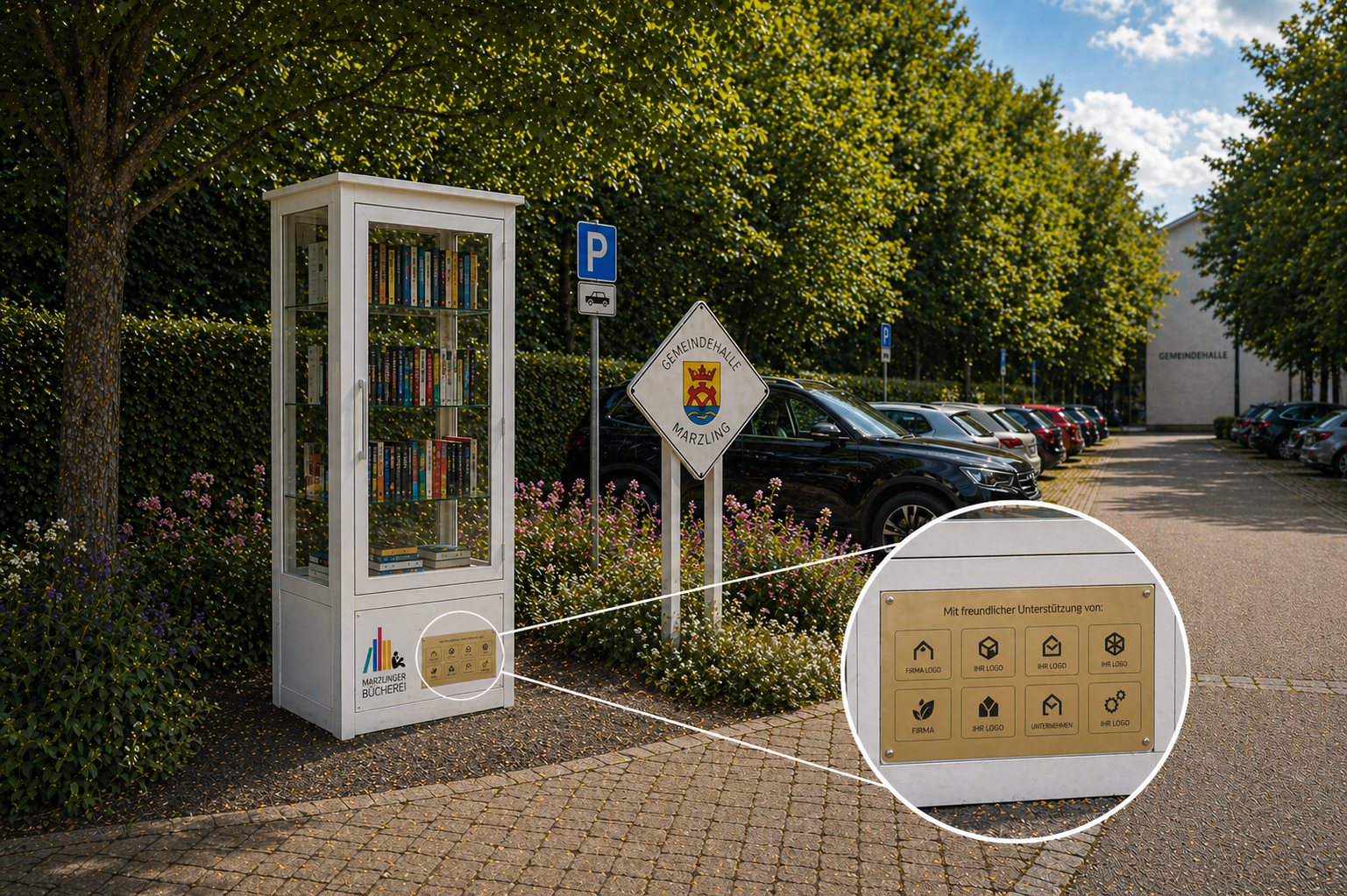 • Sichtbarkeit: Ihr Logo ist dauerhaft direkt am Bücherschrank platziert.